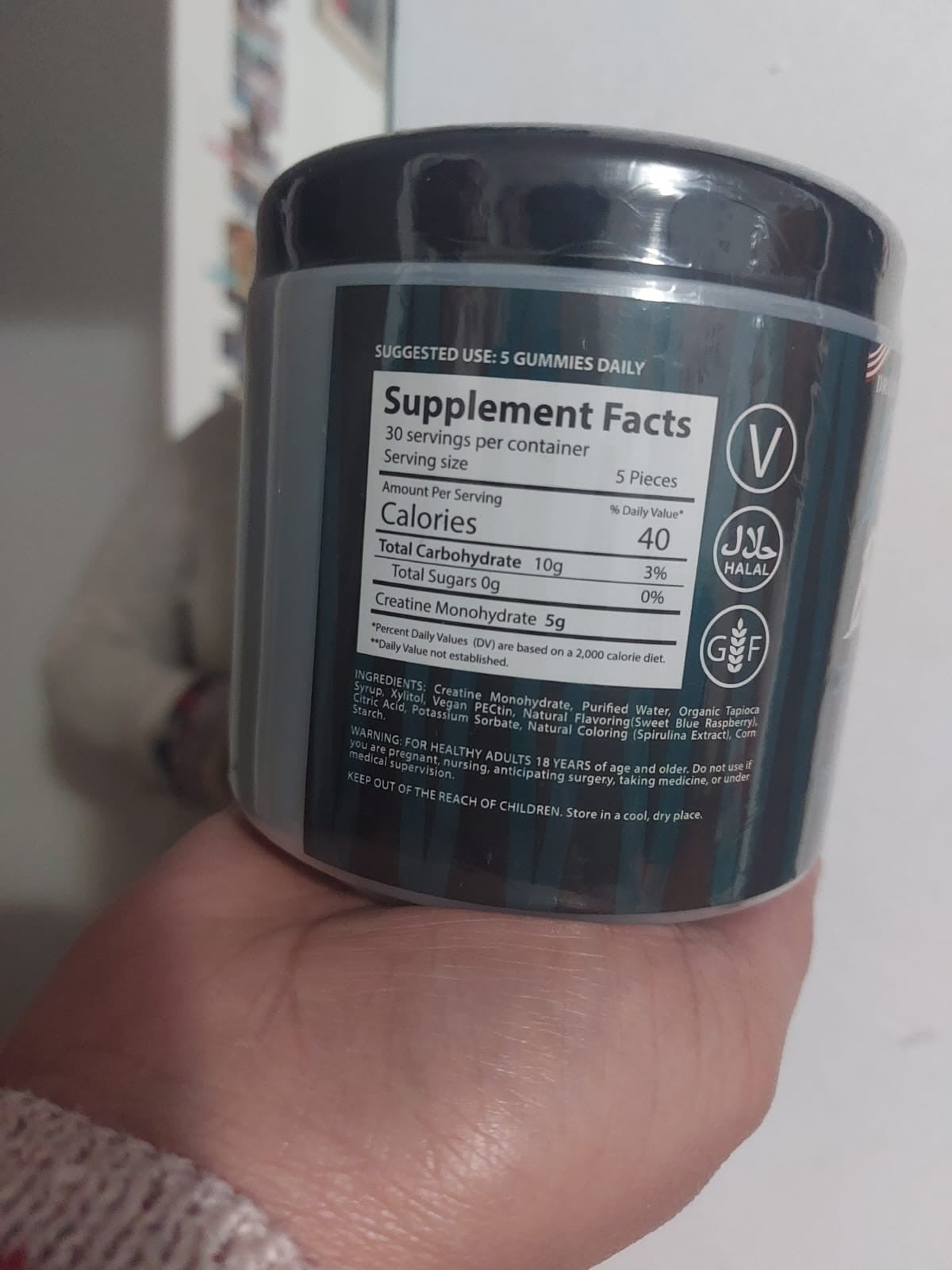 ej: 5 gomitas al día. Puedes tomarlas unos 30 minutos antes de tu entrenamiento para un impulso de energía y fuerza, o justo después para ayudar a la recuperación. En días de no entrenamiento, puedes tomarlas en cualquier momento del día para mantener tus niveles de creatina.