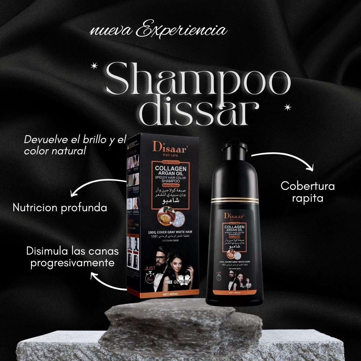 No es solo un Shampoo, es una transformación. Disaar no solo elimina las canas, también fortalece tu melena, dándole una apariencia más saludable y juvenil. ¡Vuelve a sentirte fresco y lleno de energía con cada lavado!